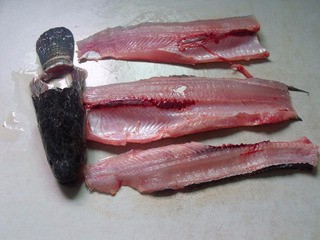 1、準(zhǔn)備好材料,魚洗凈去頭,用到從脊背處處理成兩片。