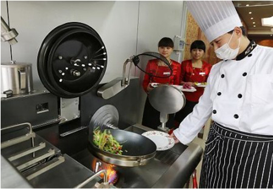 ? ? ? ?據(jù)肖寒衛(wèi)的介紹,這種“烹飪機(jī)器人”每臺(tái)的采購(gòu)價(jià)為17萬(wàn)元。在烹飪機(jī)器人的電腦系統(tǒng)里,已經(jīng)儲(chǔ)存了上百道菜的菜譜。而這套“機(jī)器人”炒菜系統(tǒng),可以用電也可以用氣,用它來炒菜不僅入味均勻,而且也降低了經(jīng)營(yíng)的人力成本。此外,傳統(tǒng)的依靠廚師炒菜,由于個(gè)人技術(shù)的不同,炒出來的菜品在味道上總會(huì)有些差異,可是用“機(jī)器人”來炒菜,它會(huì)根據(jù)系統(tǒng)內(nèi)儲(chǔ)存的菜譜發(fā)指令,店里的員工只需要按照指令進(jìn)行配合。